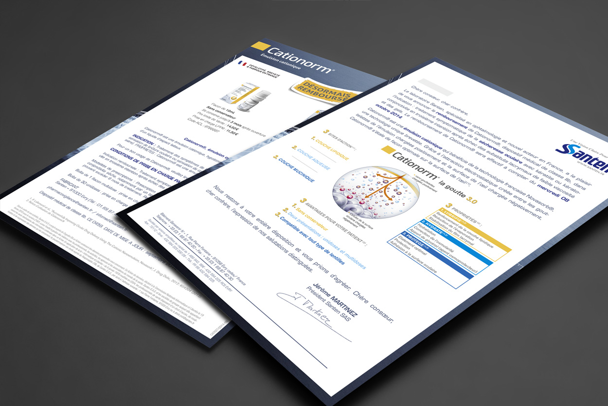 Afin de promouvoir le lancement d'un de leur nouveau produit, Cationorm, il m'a été demandé de réaliser plusieurs lettres (post-mailings) adressées aux médecins, pharmaciens et ophtalmologues.