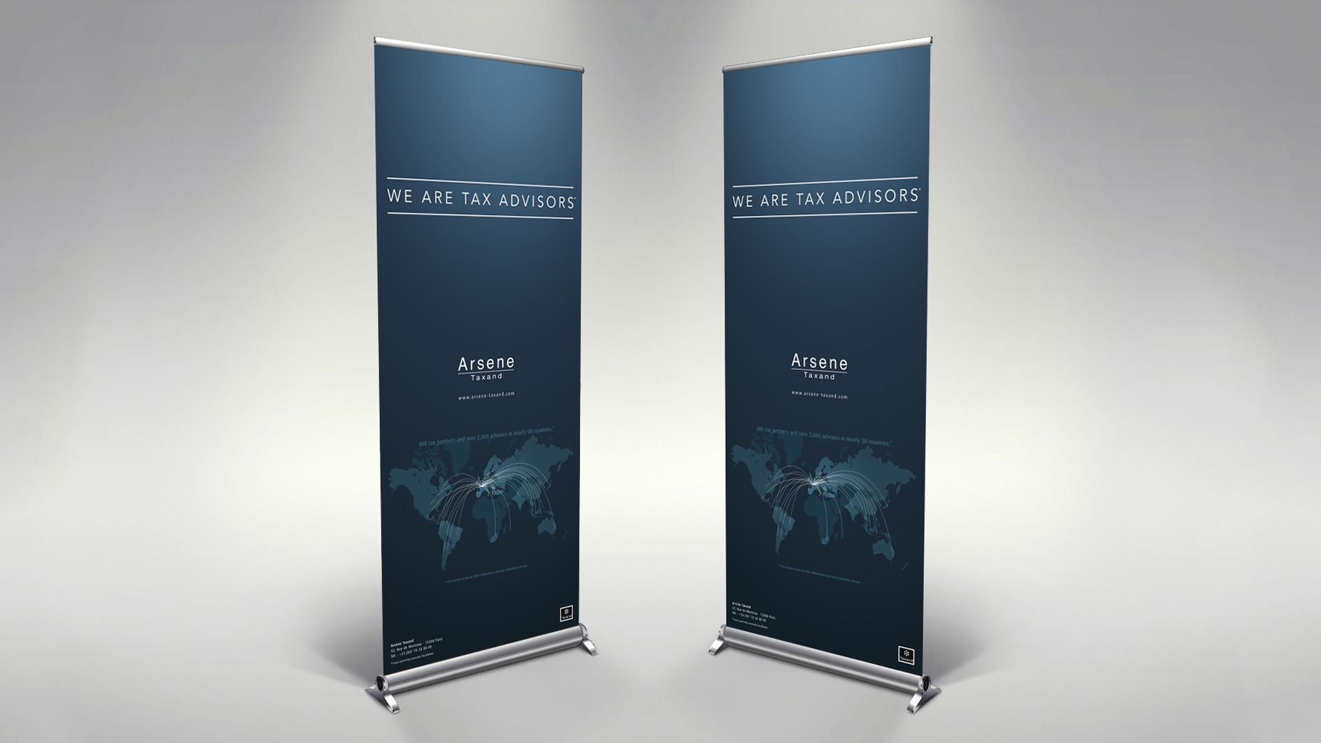 La demande était de conserver les couleurs du cabinet, mettre en avant l'internationalité du groupe Taxand ainsi que la spécialité juridique du cabinet : la fiscalité.