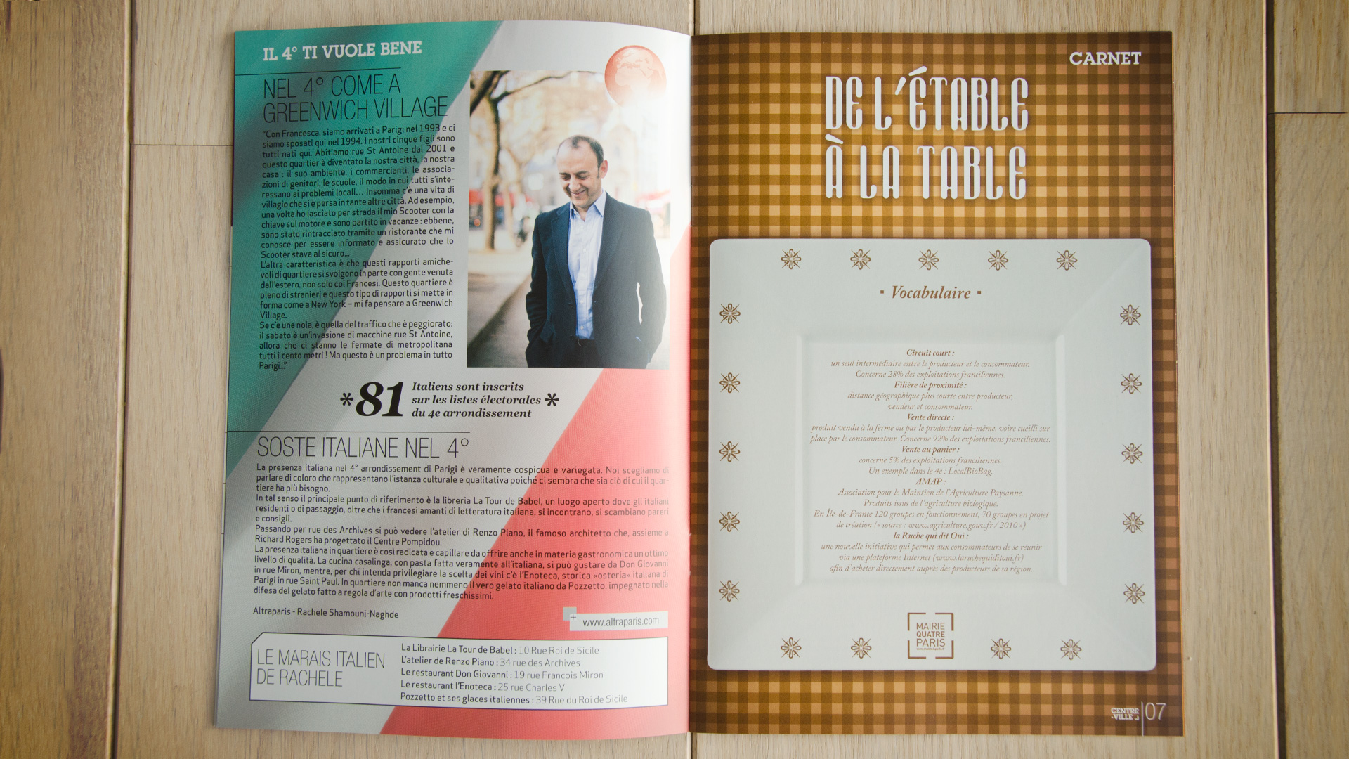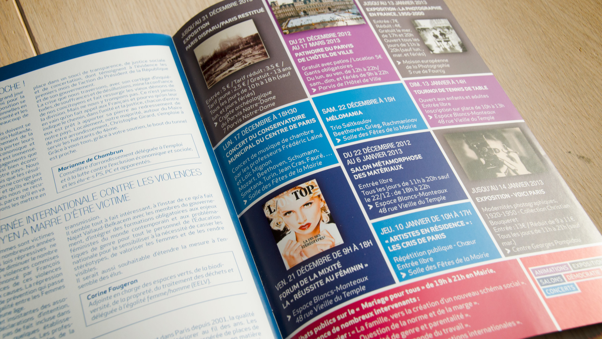« Centre-Ville » est le magazine de la Mairie du 4ème arrondissement de Paris, destiné à tous ses administrés. Différents sujets de société et d'actualité sont abordés mais également l'agenda de quartier, des mises en avant de personnalités, de lieux…